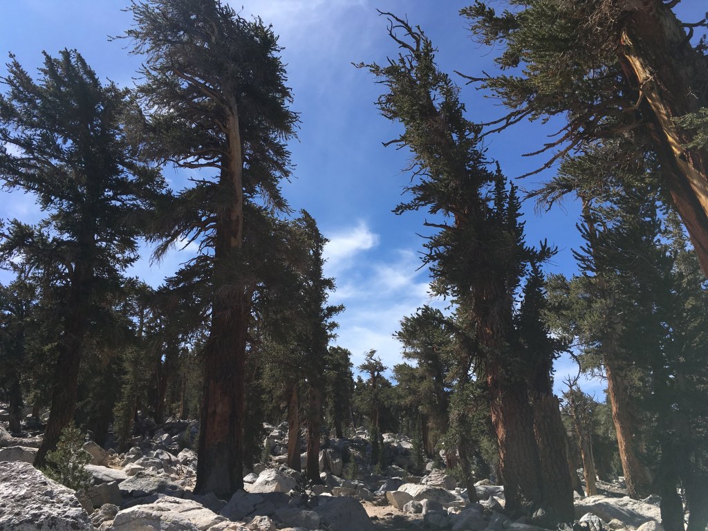 I followed the trail down into beautiful foxtail pine forest, the trees growing out of sandy patches between granite boulders.