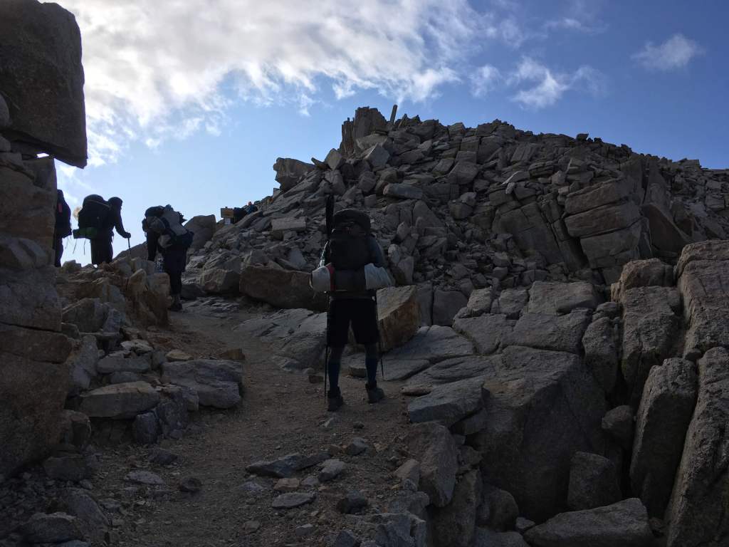 Mount Whitney is the tallest mountain in the Lower 48, so it is extremely popular with peak baggers near and far. 150 permits are issued per day for day-use and overnight climbs. After the remoteness of the JMT, it is jarring to see so many people. There are Silicon Valley achievement-oriented tech-types in full outfits of expensive brand-spanking new gear; Chinese, Arab and European tourists doing it as part of their Grand Tour of the United States; ordinary families huffing and puffing along that clearly aren’t going to make it… And JMT north-bounders, carrying fully-loaded packs uphill. Respect.