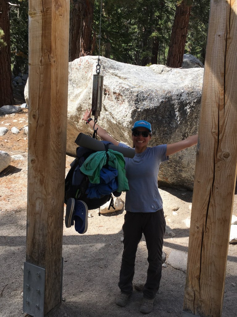 Finally, we reach Whitney Portal. About 8 meters from the end of the trail where it’s nice and well-paved, I roll my right ankle for the third time on this hike. I hobble over to weigh my pack on the scale at the portal. Then I hobble to a pit toilet. I managed to make it all the way down without having to poop in the no poop zone and didn’t end up using my wag bag! I think my body was confused by the alpine start. It is about 2:30 PM when I finish the day’s hike, the entire JMT and the journey I have been on for the last three years. I have no grand epiphanies, no sense of great achievement, all I want to do is make sure my car is still in Lone Pine, take a shower and eat a salad.